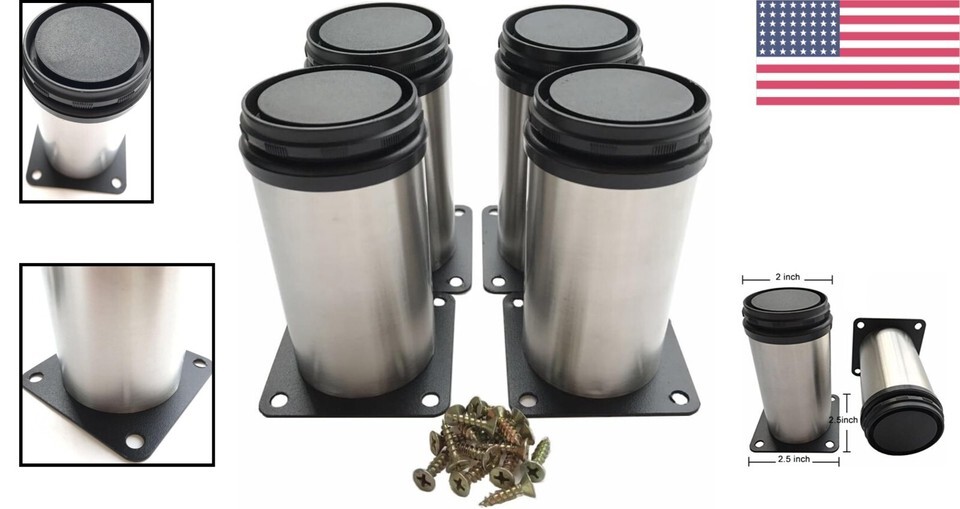 - Set of 4 Heavy-Duty Metal Feet - 4 Inch Adjustable Cabinet Legs for Modern Style
