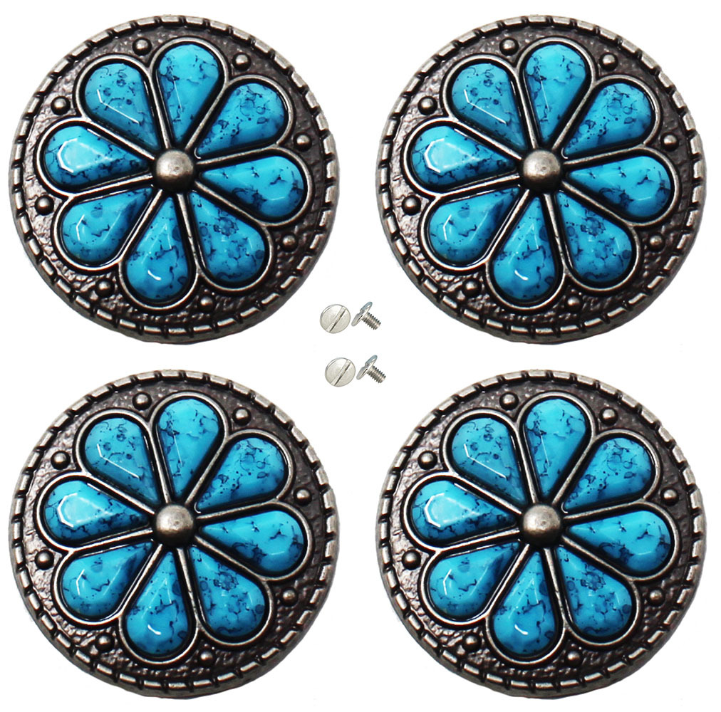 - Set of 4 Screw Back Conchos Western Saddle Bridle 1-1/4" Turquoise Stone Co587