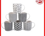 - Set of 6 Elegant Microwave Safe 11.5 oz Ceramic Coffee Mugs - Geometric Design