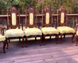 | scrollwork, carvings, motifs, chairs, seating area, set of 6: |