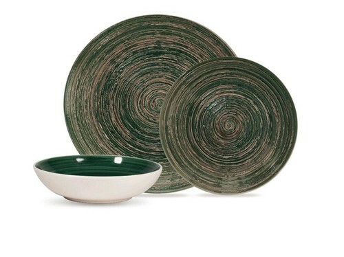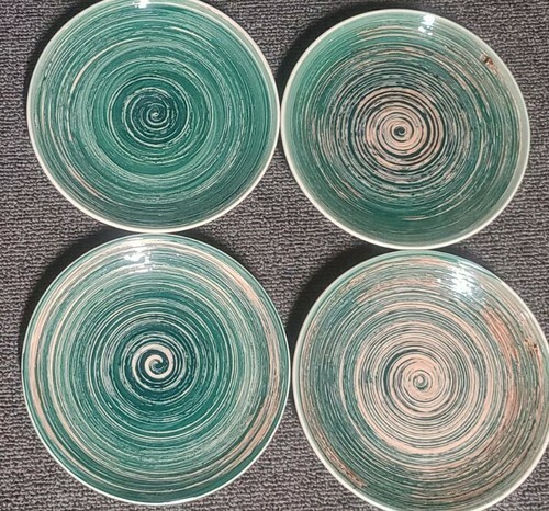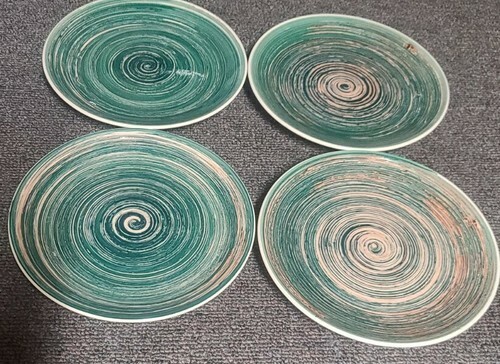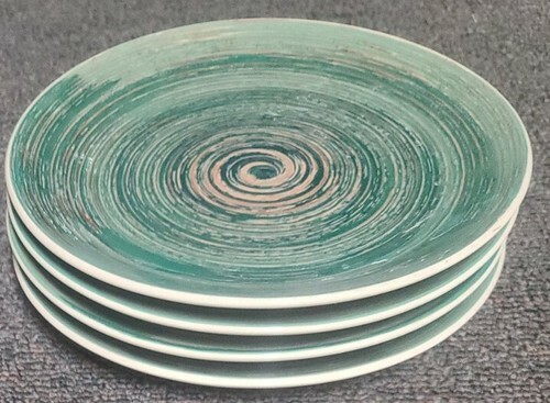 This sale is for a set of Four (4) Mainstays brand salad plates Each plate measures 8" diameter Modern style Textured swirl design with a green background Durable stoneware for long-lasting use Microwave and dishwasher safe These plates are brand new ~ never used Please view photos for a good description of these salad plates Thank you!