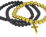 This is for a brand new set of three Steeltime Black Lava 18K Gold Plated Stainless Beaded and Holy Cross Charm Bracelets Length 8.0" (Elastic)
