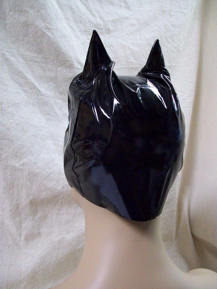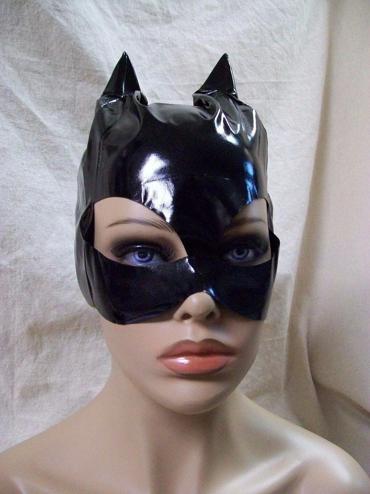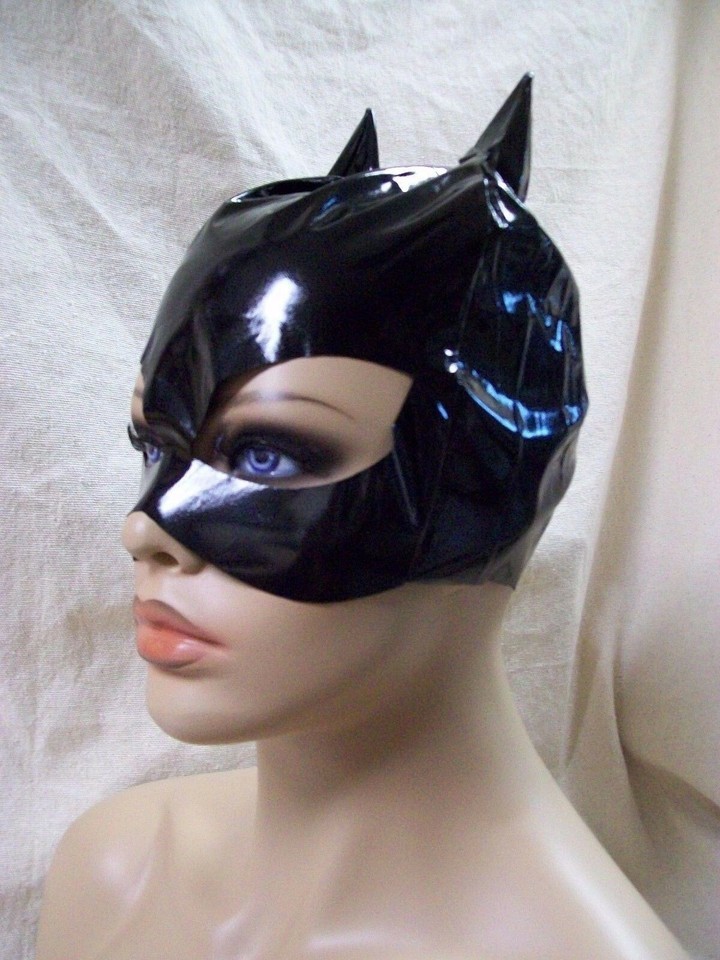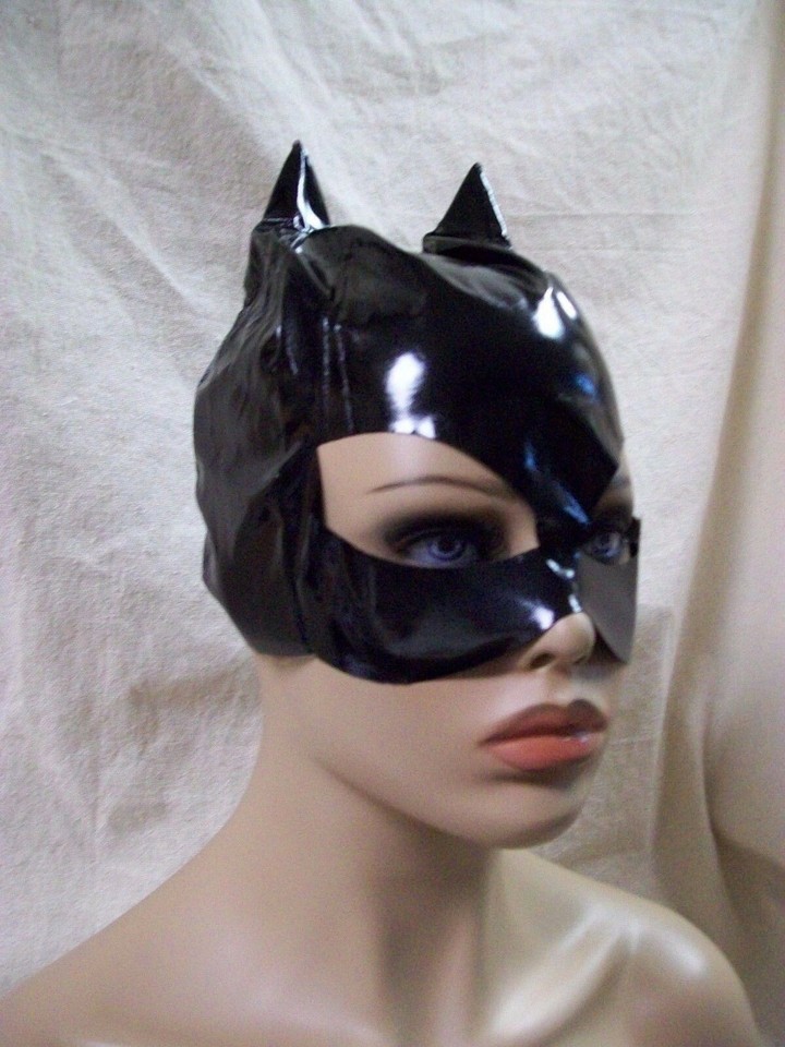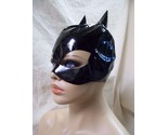 Black Shiny Wet Look Vinyl Face Mask. Mouth area is open making it easy to eat, drink, talk, etc. One size fits most. Stretchy delicate fabric. Becareful not to overstretch as this could cause damage to the mask. Mask is Folded in package and may show creases, wrinkles or indentations. Unisex: Could be worn by male or female. Could be used with costumes such as: Sexy Cat woman, Bad Kitty, Roadkill, Naughty Kitty Cat, Cat Burgular, Fetish, Bondage, Roleplay, etc. DOES NOT INCLUDE MANNEQUIN OR OTHER ACCESSORIES. This item ships in an envelope.