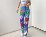 - Sexy Contrast Color Letters Graffiti Print Loose Jeans