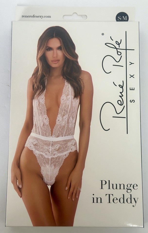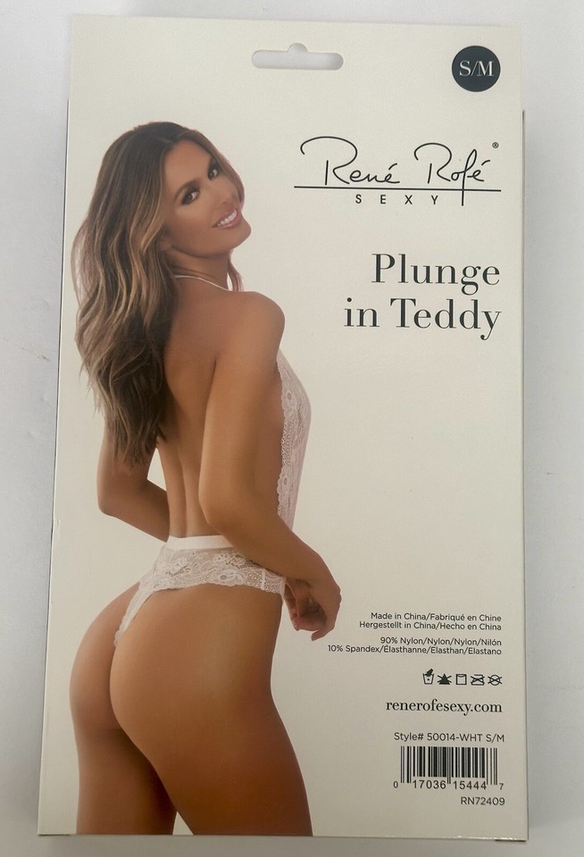 - Sexy Plunge In Teddy White Deep Plunge Adjustable Strap Thong S/M - New w/tag