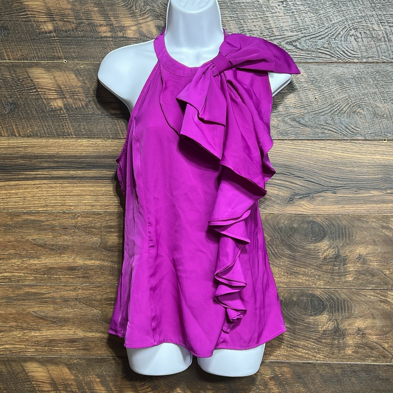 Purple Halter Top by The Heels, Ruffle Bow Shoulder Detail, Size M, 100% Polyester