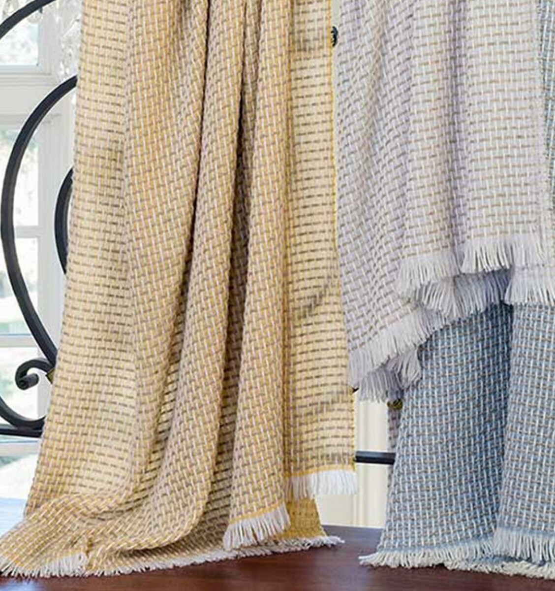 Vitta Throw by Sferra Fine Linens blends the beauty of the basket weave with a wonderfully soft and luxurious construction. Made of 57 percent wool and 43 cashmere, the Vitta has been designed to blend three shades into the beautiful basket weave design.