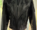 Shaf VTG Moto Womens Sz Medium Fringe Rose Braid Zip Lining Leather Jacket EUC!
