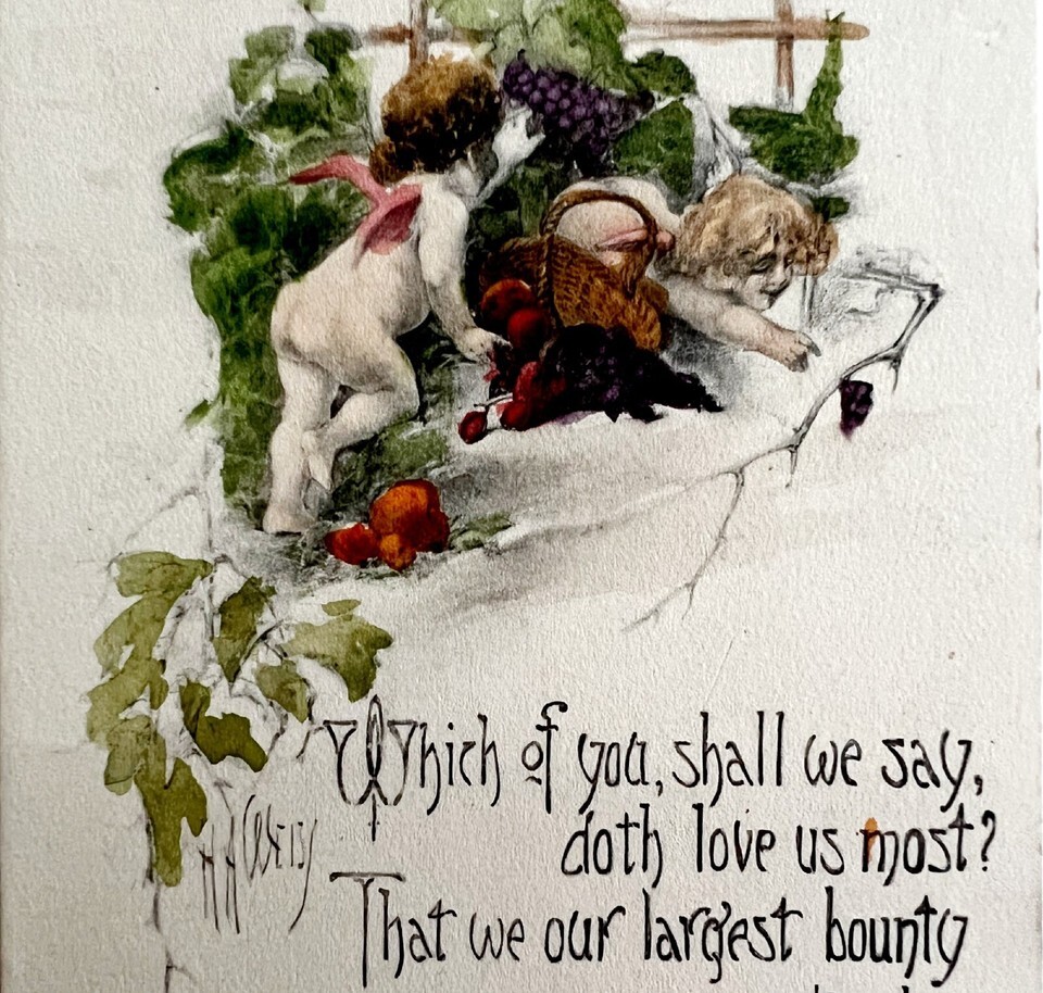 Shakespeare Cherub Wine Grapes Victorian Greeting Card Postcard 1900s PCBG11B