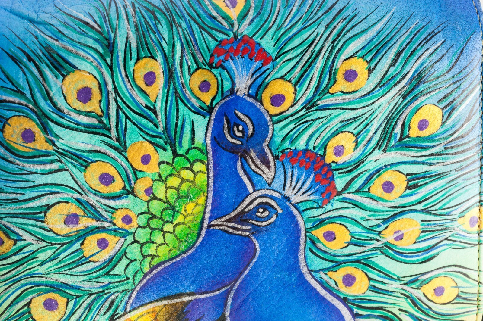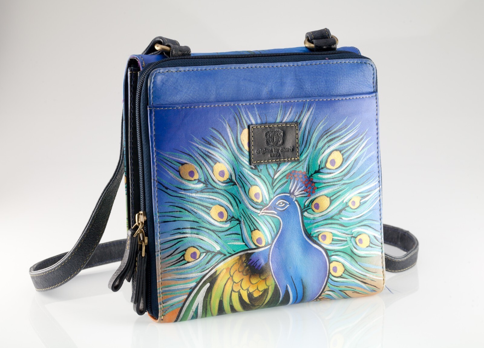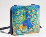 - Sharif Leather Handpainted Shoulder Tote Messenger Bag Peacocks