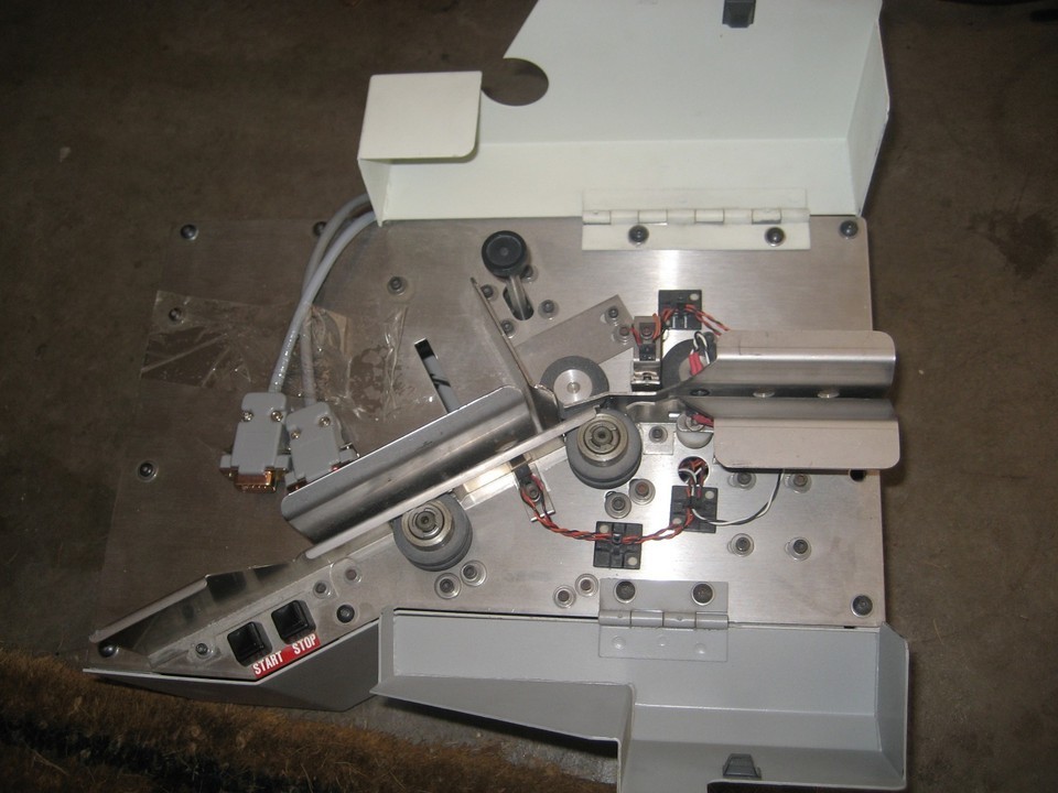 Shear Tech Check Stripper Auto Feed Table top PN# 469 3000 I do not know anything about these. This is a hard to find model. Solid, and it good condition. May have to tweek it a bit to make it go perfectly. Did not have power source to make this humm. May be a coder and stripper. Do not know. Will ship international.