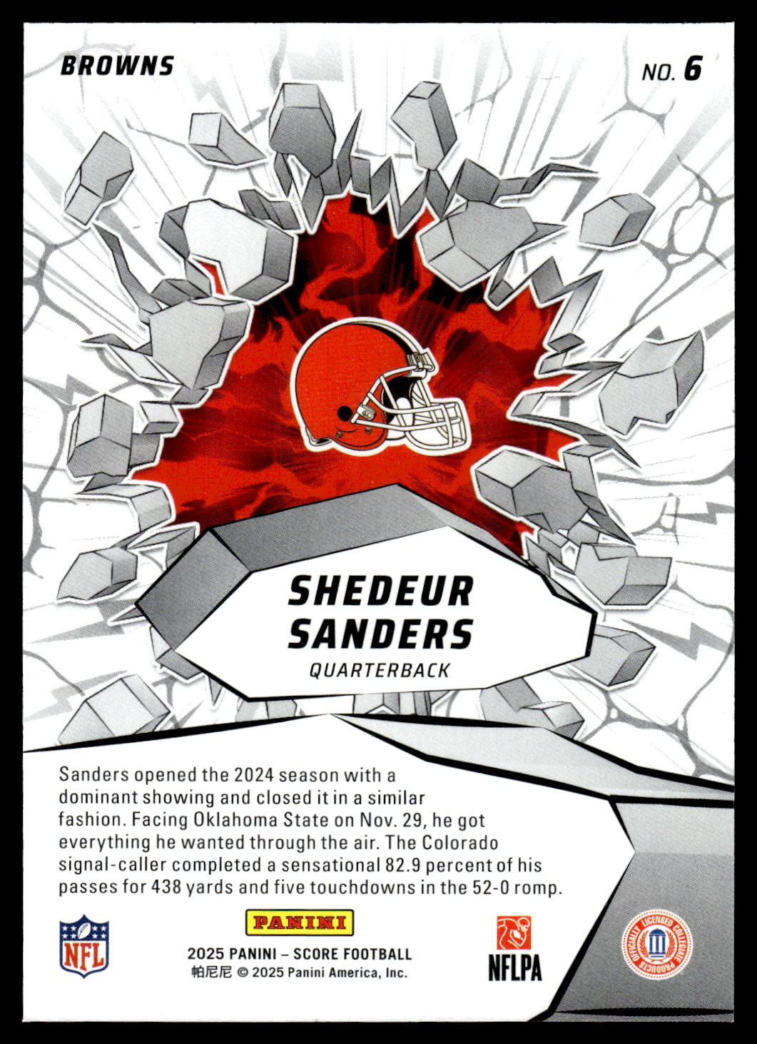 Shedeur Sanders RC* 2025 Panini Score NFL Football Card 5 - Near Mint or Better