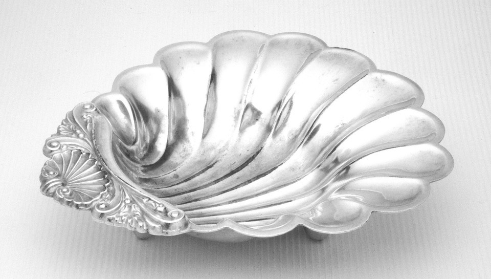 SHEFFIELD 6? STERLING SILVER CLAM SHELL POLISHED CANDY NUT BOWL FOOTED ENGLISH