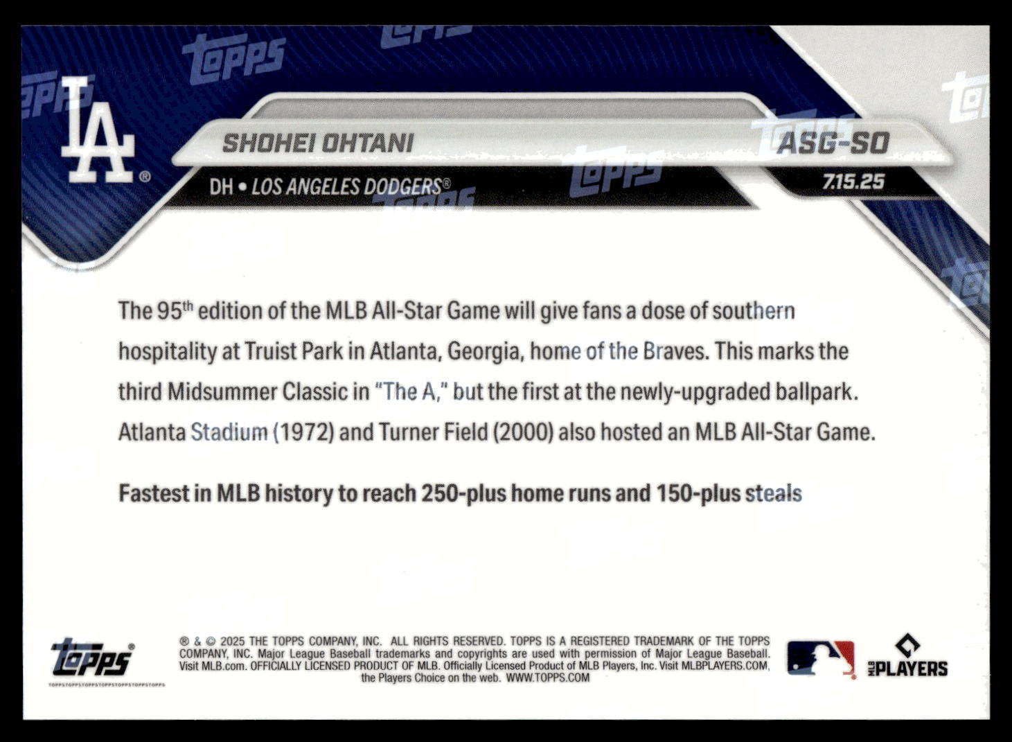 - Shohei Ohtani* Limited Edition 2025 MLB Allstar Game National vs American ASG-SO