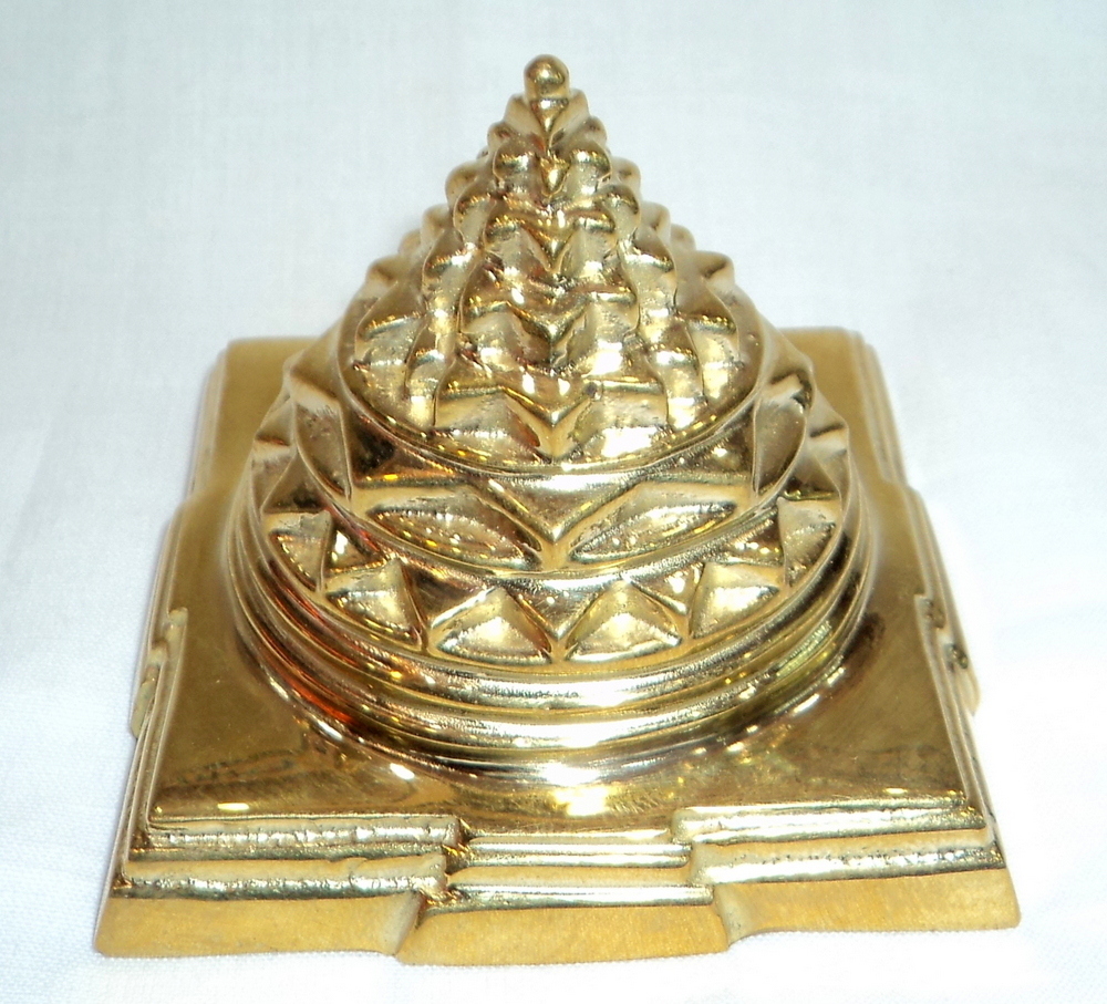 The Maha Meru or Meru sri chakra , is a three dimensional projection of the great yantra known as sri chakra , said to be the mother of all the Mandalas . The sublime geometry of the sri chakra is revealed wisdom. It is not of human origin . It is nothing less than the genetic code of the Cosmos . Various scriptures ? such as the Shakti Upanishads, the Brahmanda Purana, the Sri Chakra Samhita, the Sri Chakra Yoga Sara, the Sri Chakrartha Sara and others ? all state in a single voice that merely seeing the Sri Chakra washes away all sins and grants auspiciousness. Yantra energizes the location where it is installed. You may place it near the entrance of your home/office/shop or in your living room or reception or study room or office cabin. You may keep it on a table or use as a wall hangi