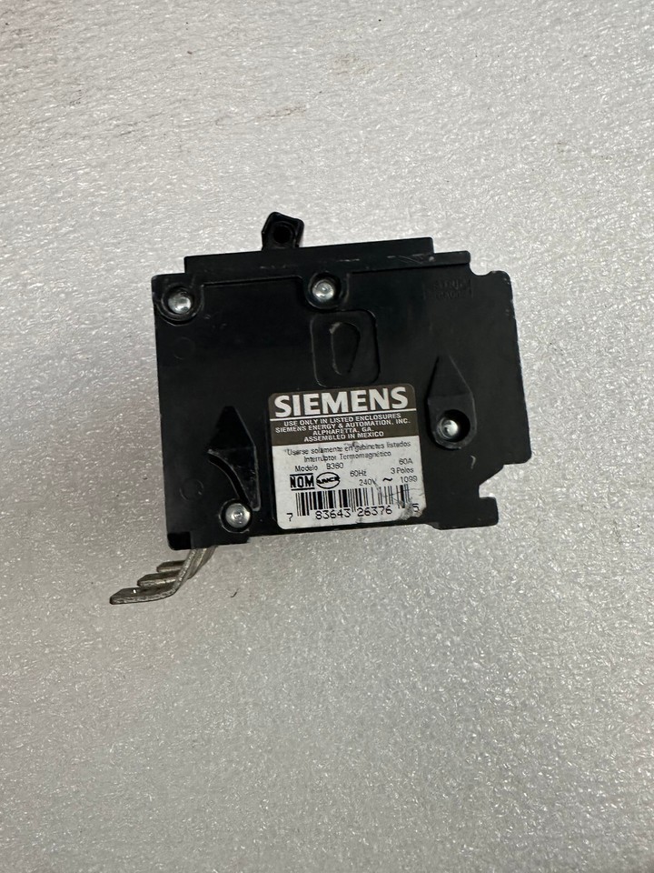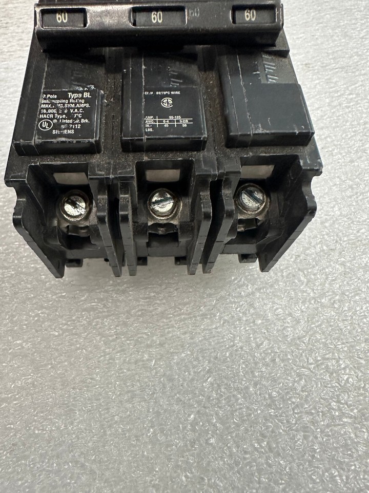 Siemens 3 Pole 60 Amp Circuit Breaker, Bolt In B360