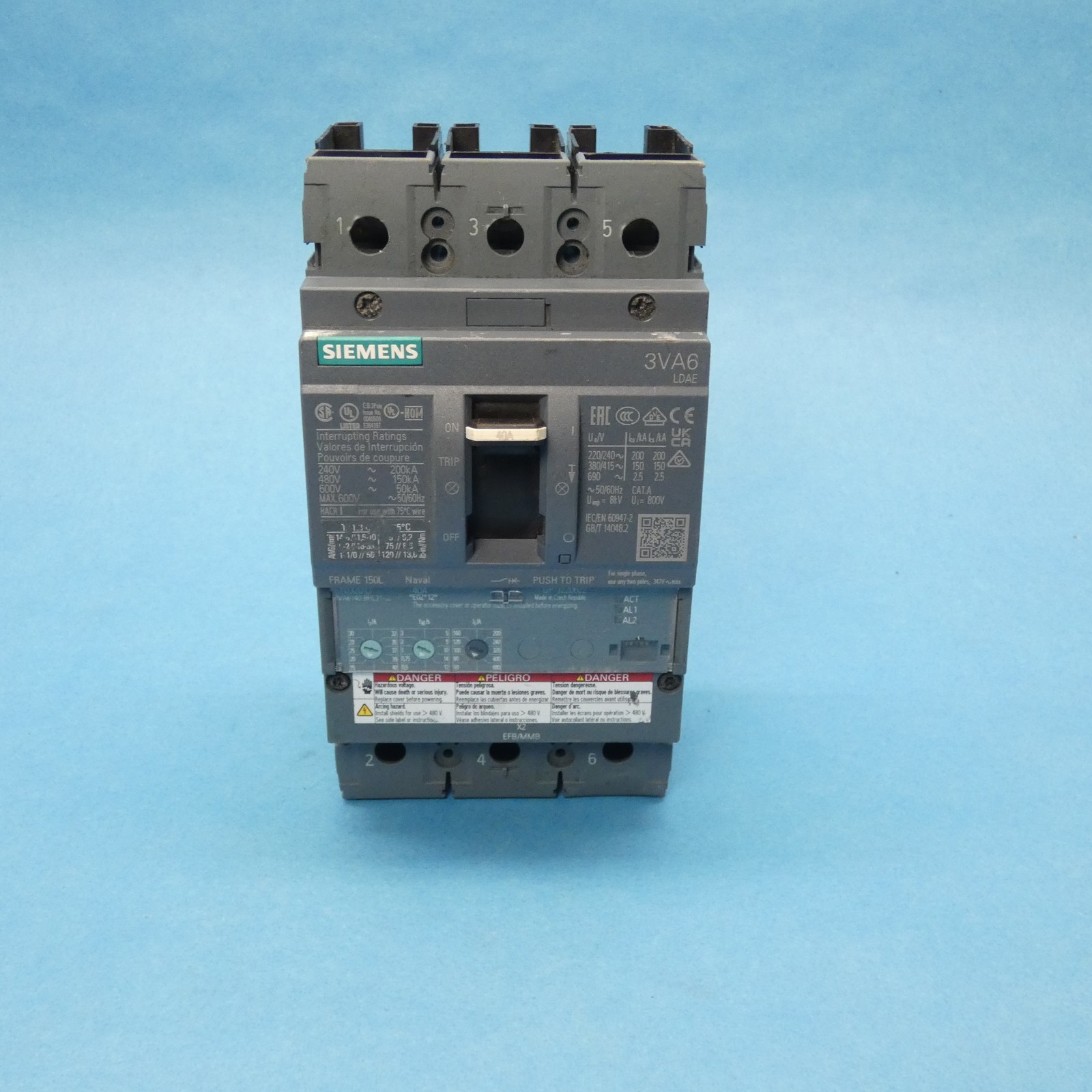 Siemens 3VA6140-8HL31-0AA0 Circuit Breaker 3 Pole 40 Amp 600 VAC