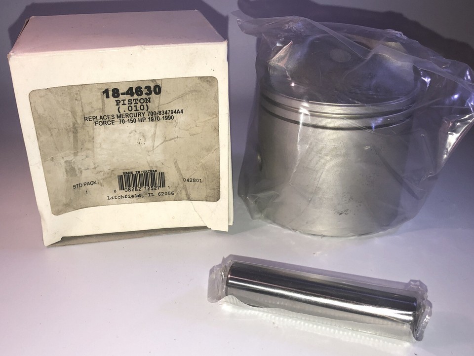 Sierra's 18-4630 Piston Kit is designed for use with Chrysler/Force engines. The piston features a 3.322 / .010 bore size. The kit is interchangeable with Chrysler/Force 700-834794A4. Sierra products meet or exceed the original equipment part that they replace. This kit is fit specific, check part numbers to ensure proper fit.