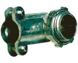 Used to make a 90 degree termination of armored cable, metal clad cable or flexible metal conduit to a knock-out or unthreaded slip hole in a dry location box or enclosure