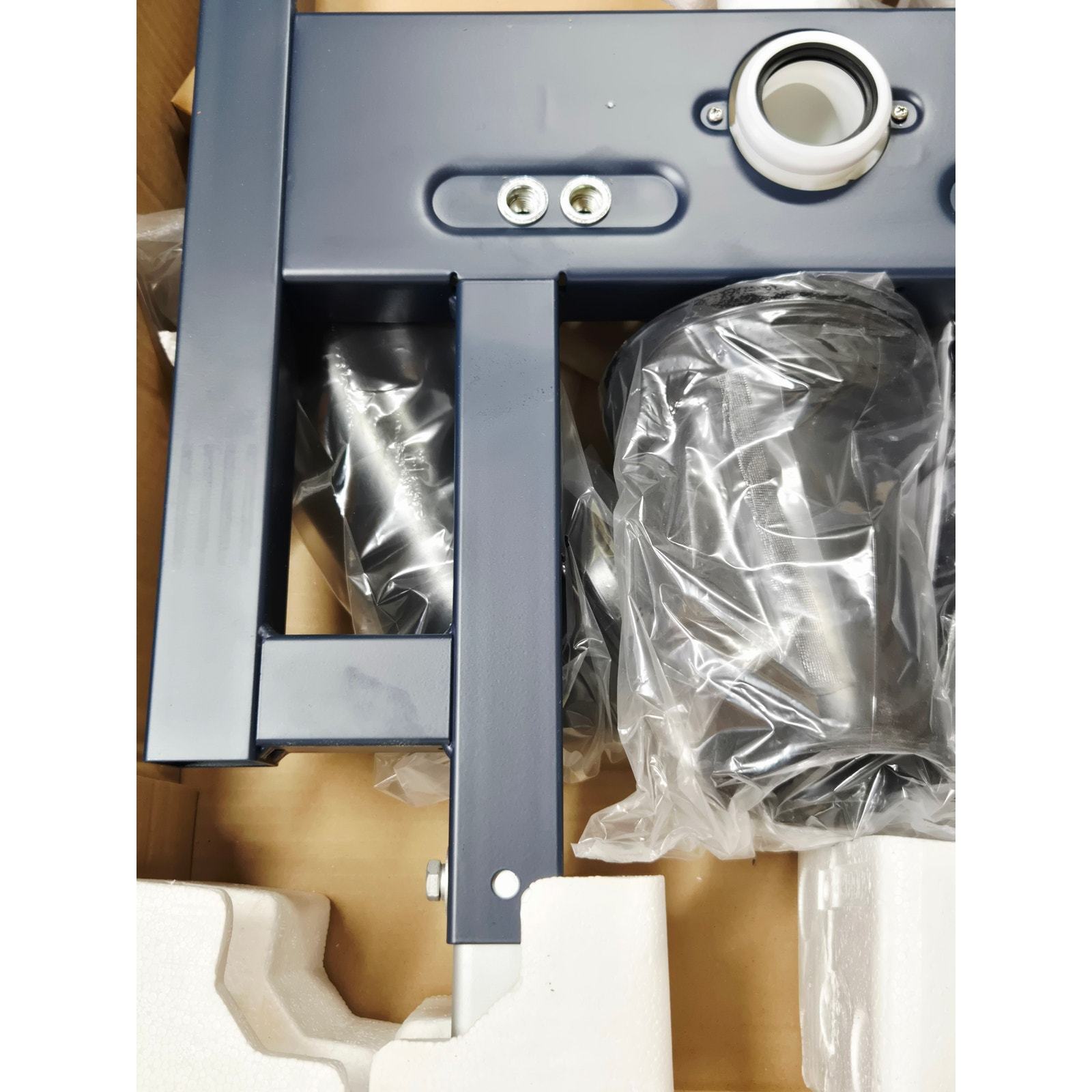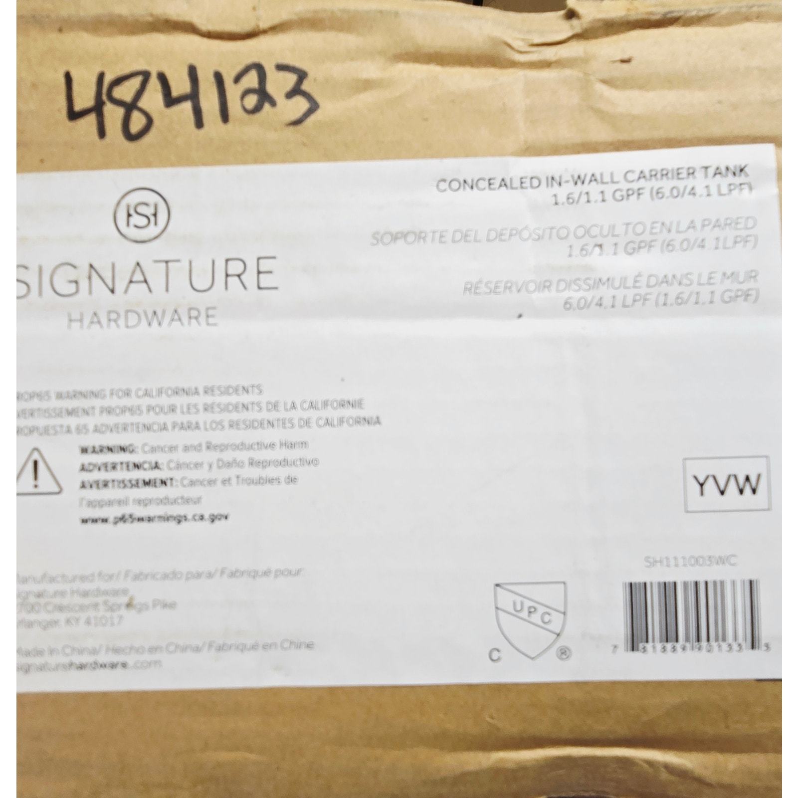 Thank you for visiting! All orders are shipped for FREE within the United States. For international sales, shipping costs will be added to the purchase price. Please contact us with your shipping address for a parcel quote. Orders before 2PM CST will be shipped the same day. Our items have never been installed and are sold as open-box products, unless otherwise noted. While the boxes may have slight damage, as shown in the pictures, the items themselves are carefully inspected to ensure they are not damaged or missing any pieces. We accept returns on items that have not been installed or damaged within 14 days of your purchase. In the rare event that an item is defective upon installation or has any blemishes not previously stated in the description, we will discuss a refund or exchange. Please, reach out if you have any issues that need to be addressed. Our goal is to achieve complete customer satisfaction. We appreciate you viewing this listing and look forward to serving you. Signature Hardware 484123 Concealed In-Wall Tank Carrier for Wall Mount Toilet - Matte Chrome Perfect for your wall-hung toilet installation, the Concealed In-Wall Tank Carrier will give your new addition a clean, seamless look. Necessary for proper installation, the carrier ensures your toilet is secure while giving it a sleek appearance that is easy to clean. Choose your favorite hardware finish to best match existing decor. Dual-flush toilet. 1.08 / 1.6 gallons per flush. Compatible with the Arnelle Wall-Mount Toilet. Bowl sold Separately.