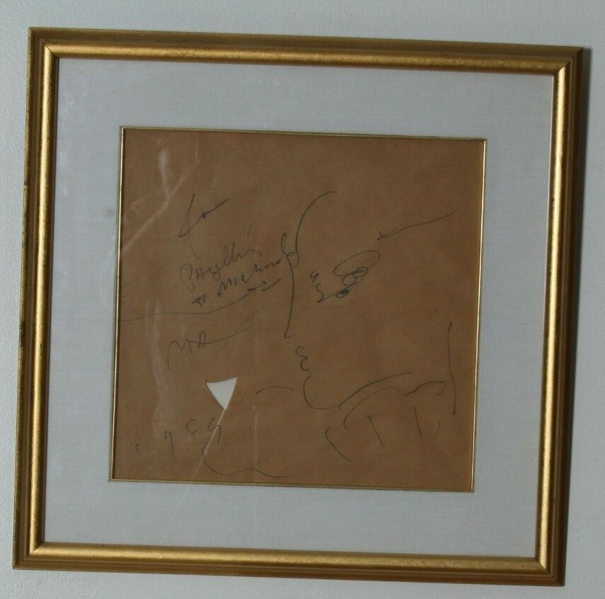 Signed Doodle on Kraft Paper by Peter Max in Frame Original Sketch