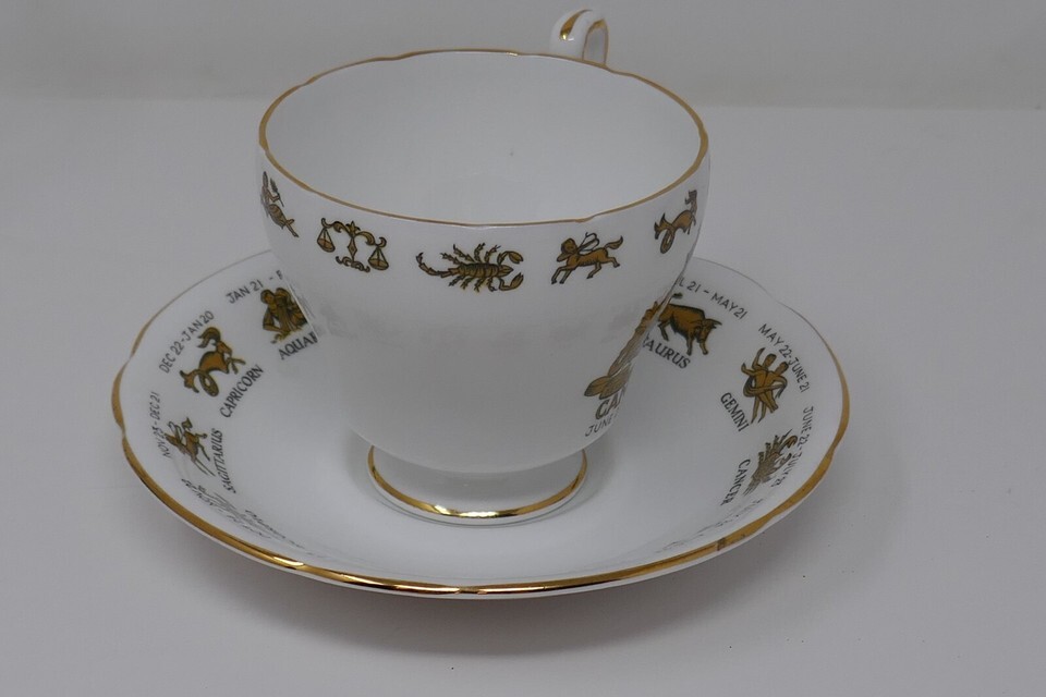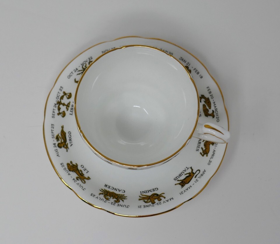 Up for sale is a vintage Signs of The Zodiac Regal Bone China Tea Cup Saucer. The cup is approx. 3" tall and 3" wide and the saucer is 5.5" wide with no chips, cracks or crazing. See photos for item condition, this is a picture of the actual item. All reasonable offers considered!! **Payment** We do expect payment within 48 hours of the purchase. If for some reason you need a couple of extra days, please let us know. **Feedback** Once you have received your item, if you are satisfied, please leave feedback. We are happy to leave feedback for you after you have left feedback for us to let us know that you have received your item and the transaction is complete. Please contact us before leaving feedback if there is a problem. **International Buyers ? Please Note** Import duties, taxes, and charges are not included in the item price or shipping cost. These charges are the buyer's responsibility. Please check with your country's customs office to determine what these additional costs will be prior to bidding or buying. Check out our store for more deals!!