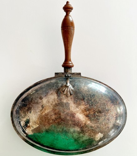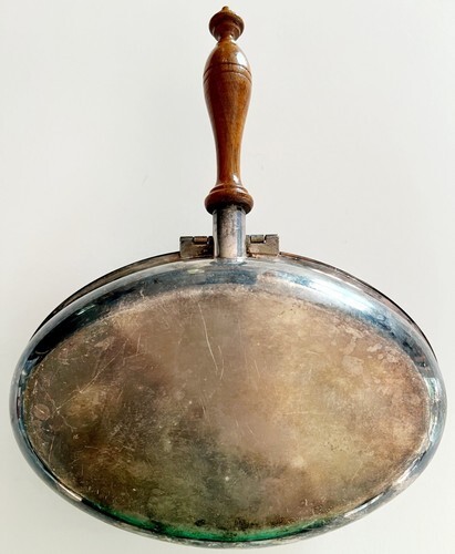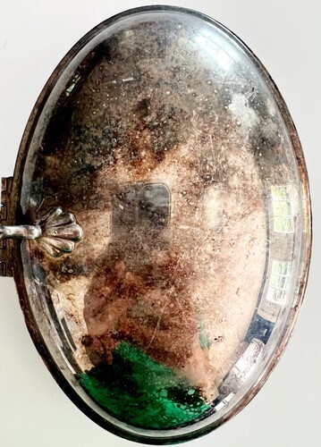 In great antique condition with typical wear including patina on silver plate