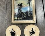 This beautiful Victorian couple silhouette set, framed under glass, is a must-have for any collector of vintage decorative pieces. The intricate details and elegantly crafted paper material make it a perfect addition to any room, especially with its unique color scheme of multi-color. The framed circle design adds a touch of sophistication to this piece, making it a standout in any collection. The brand may be unknown, but the quality and craftsmanship speak for themselves. Add this exquisite set to your collection today and enjoy the timeless beauty it brings to your home.