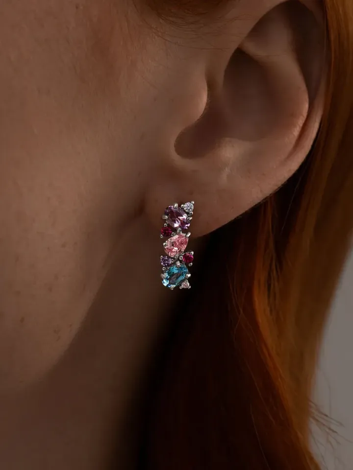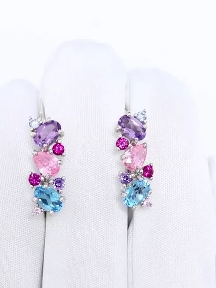 - Silver 925 earrings with topaz, cubic zirconia, amethyst and ruby corundum