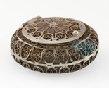 Silver Antique Filigree Pill Box With Sunflower Pattern-