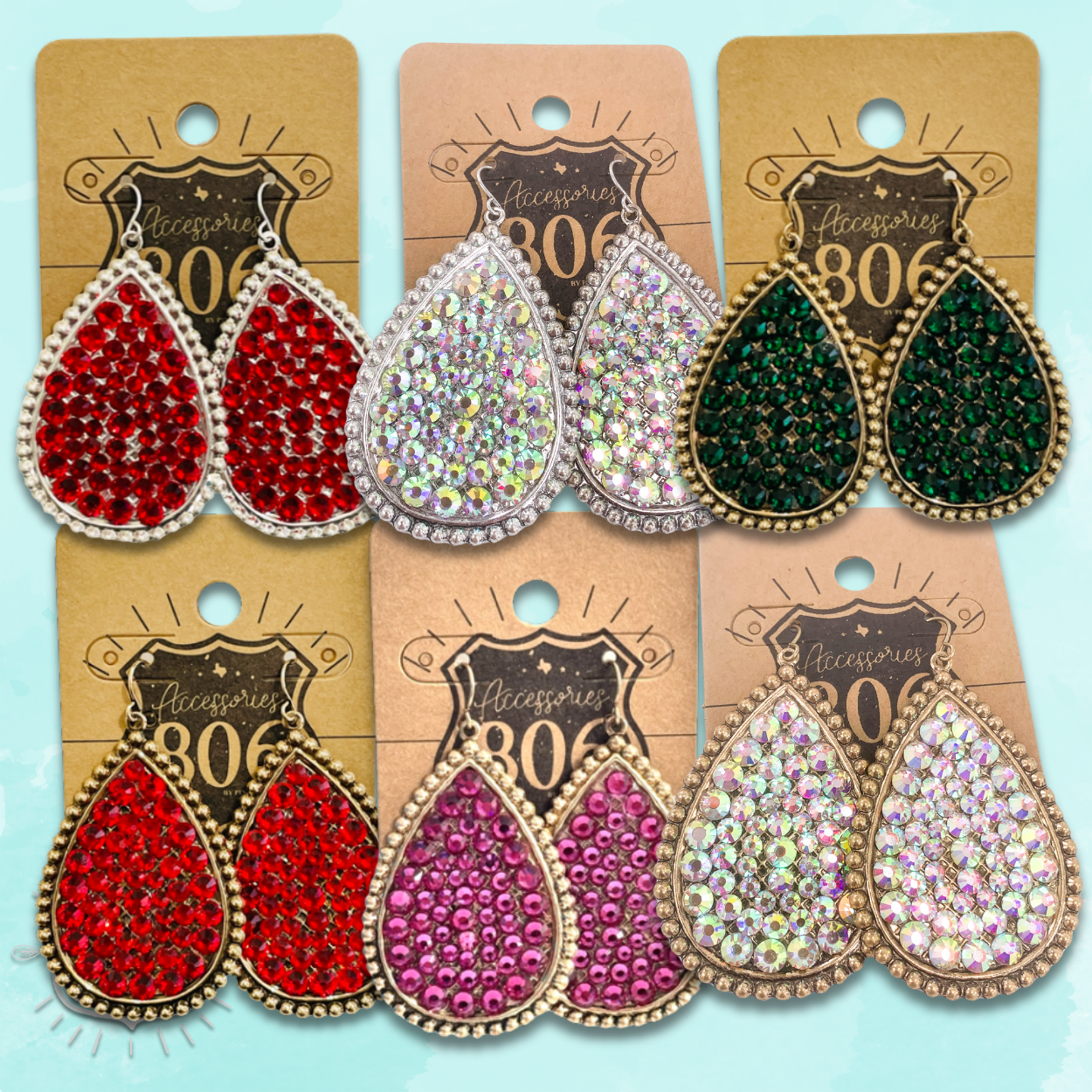 This western teardrop earring is filled with rhinestones. Very sparkly yet light weight! Product details Western rhinestone teardrop