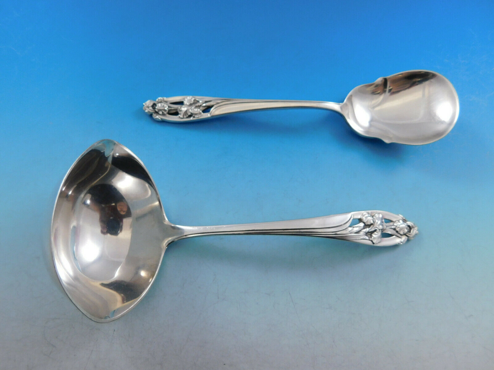 Silver Iris by International sterling silver flatware set with pierced handles and high relief iris detailing - 39