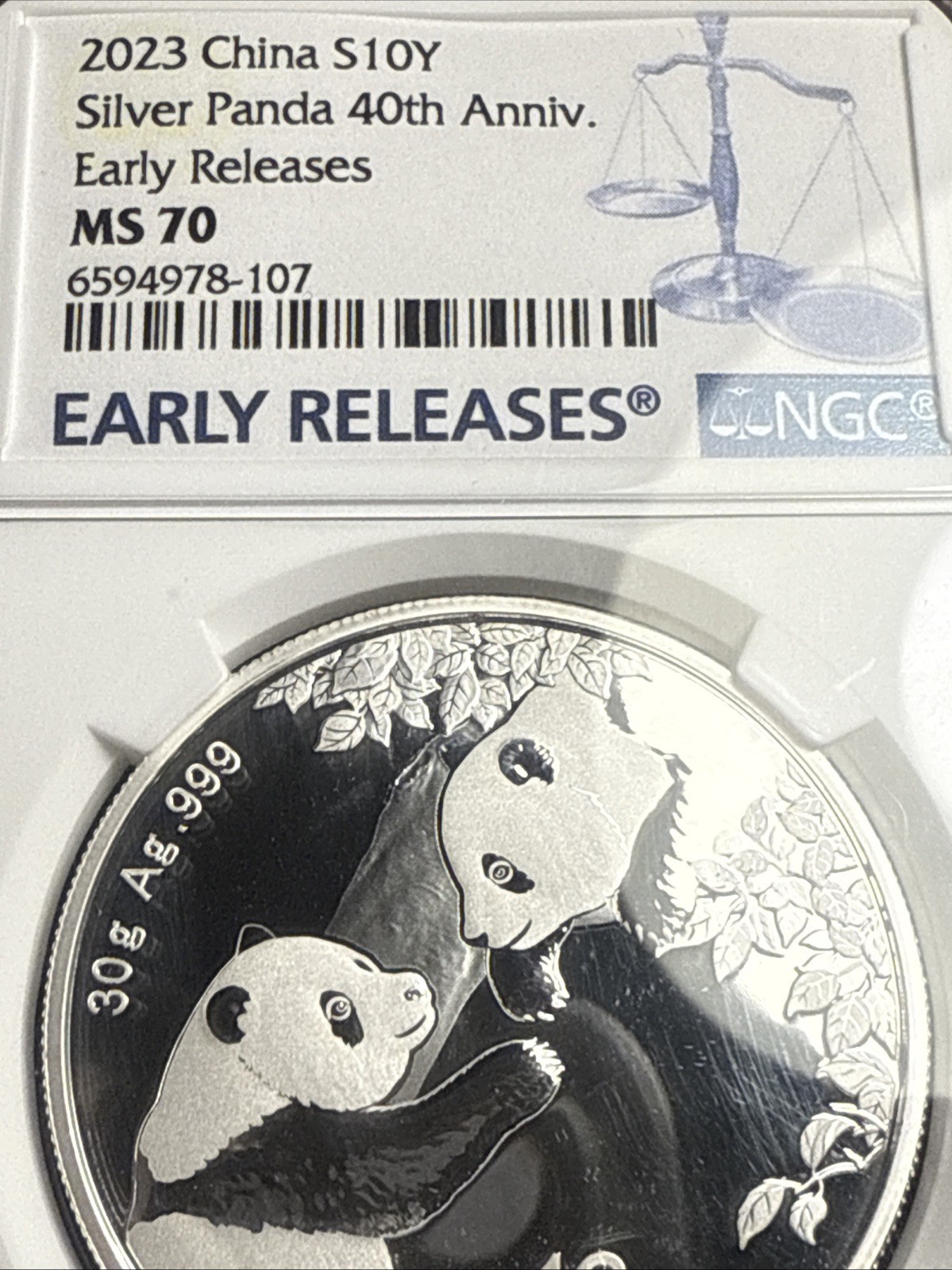 Silver Panda MS70 China NGC 40th-Anniv One of First 20,000 Struck -& 1 Gold Foil