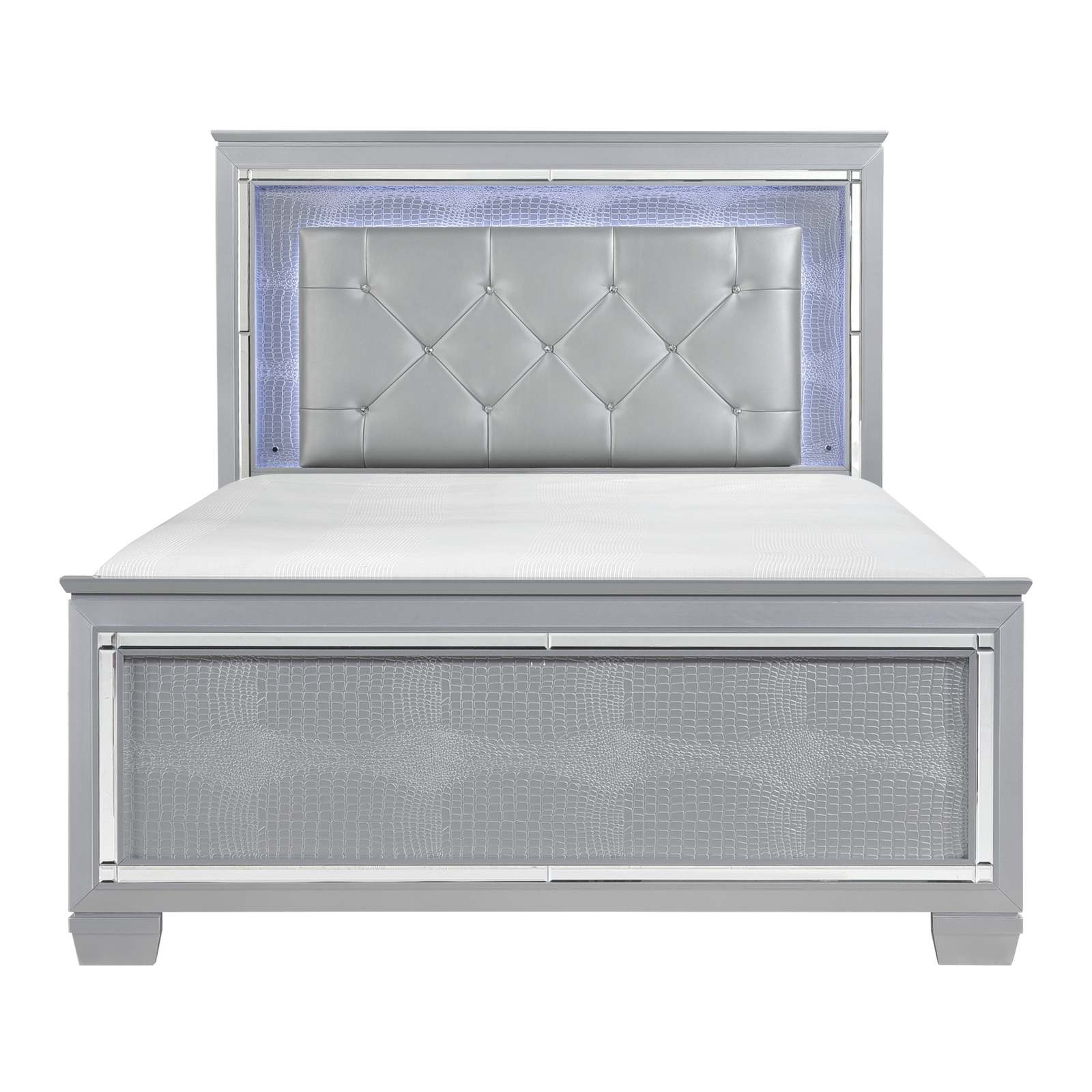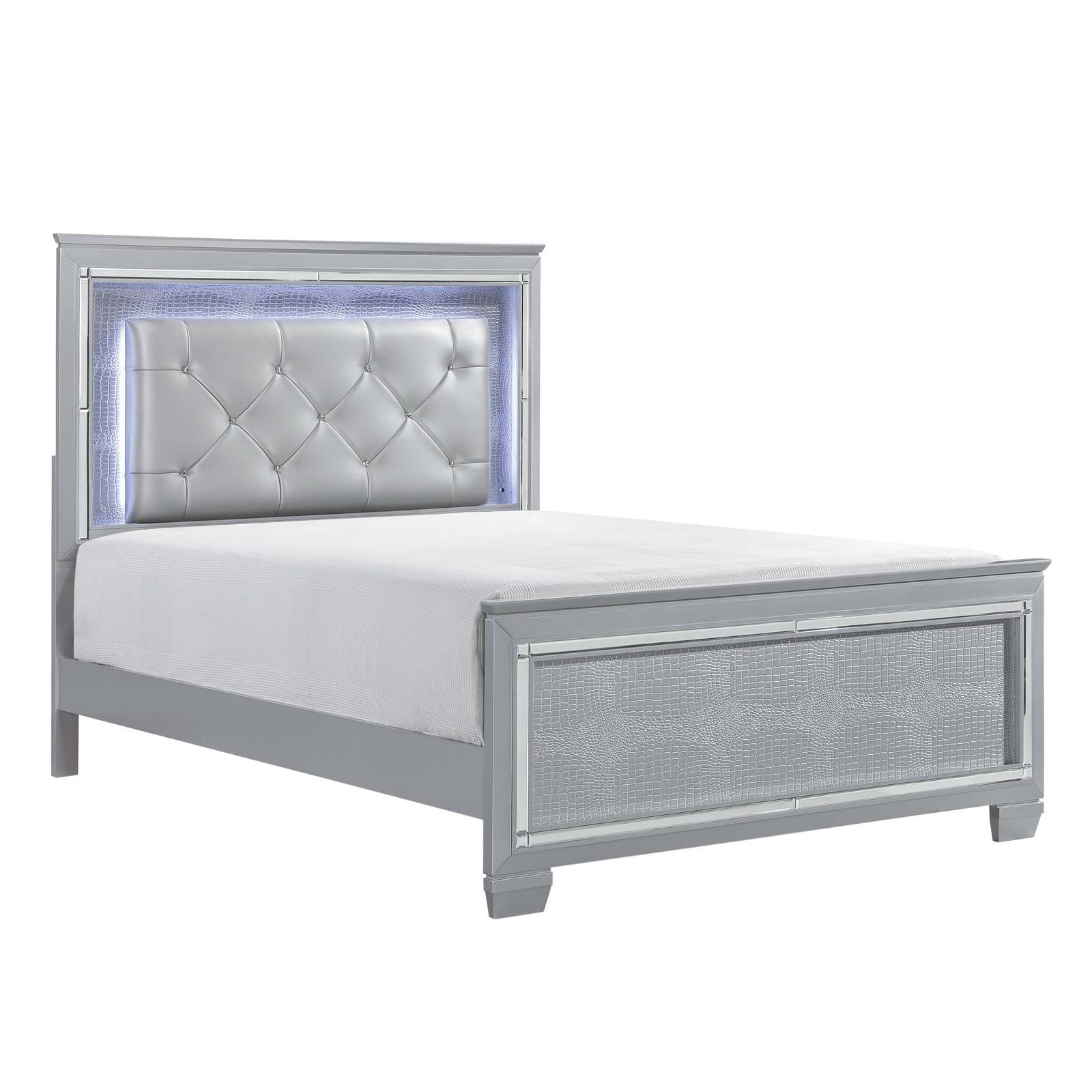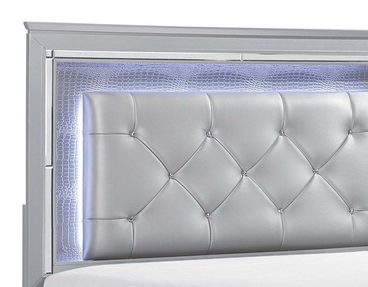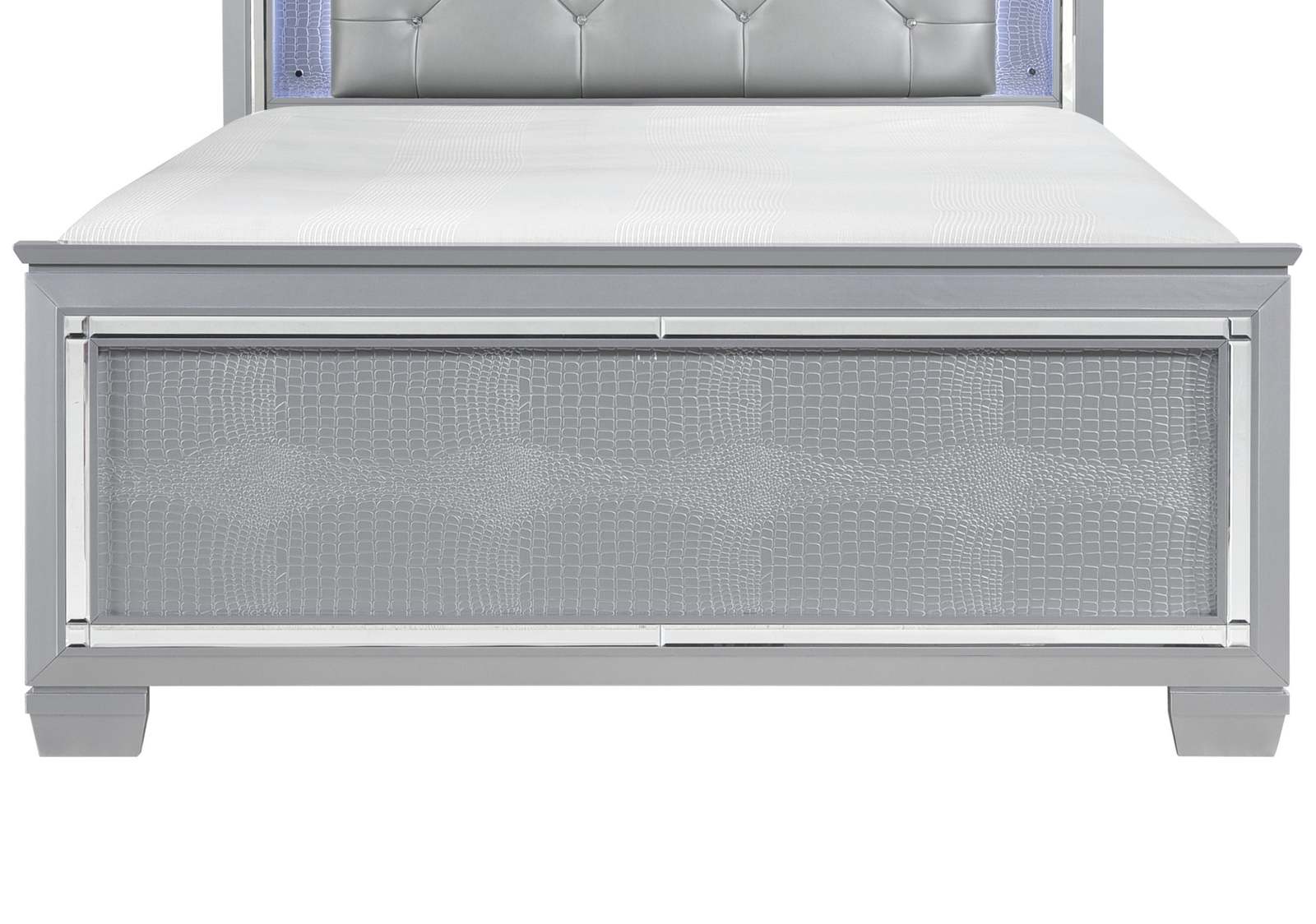 Silver Queen Upholstered Button-Tufted LED Bed Faux Alligator Headboard