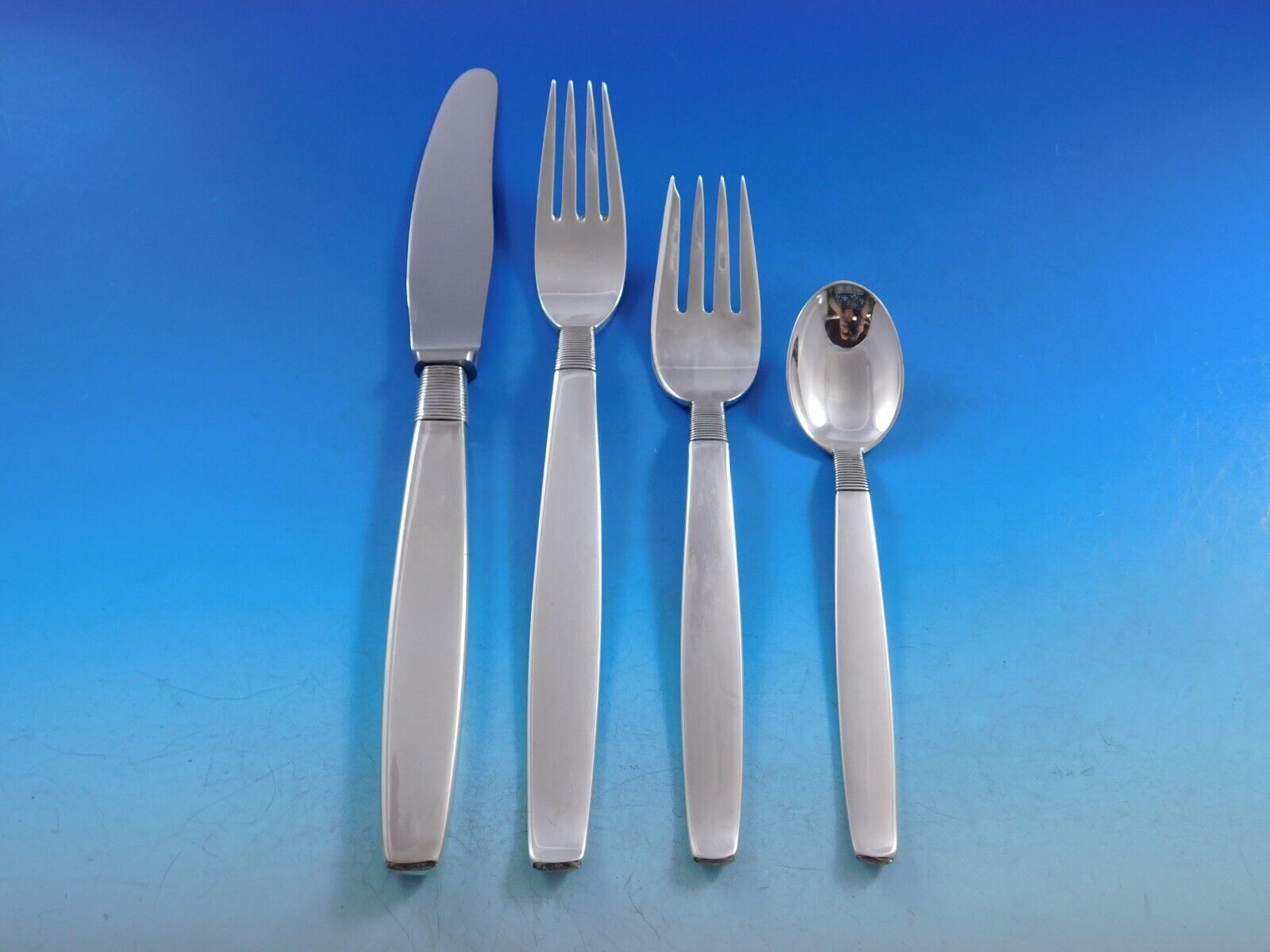 - Silver Thread by Hingelberg Danish Sterling Silver Flatware Set Service 63 pcs
