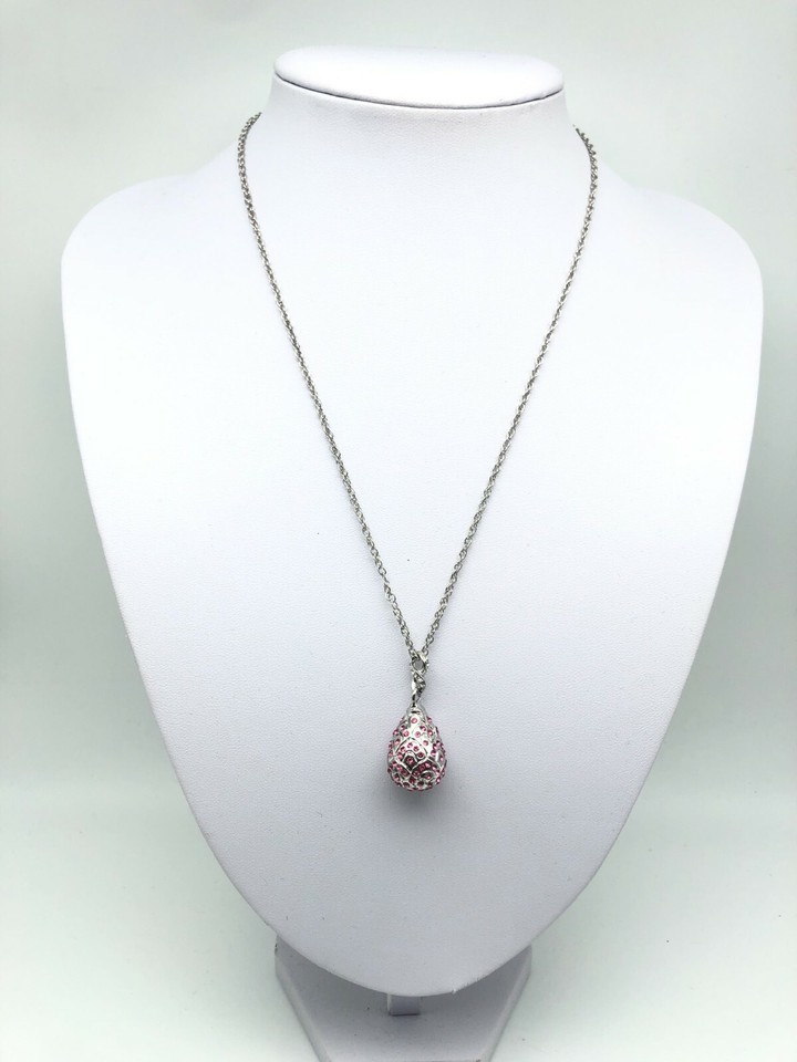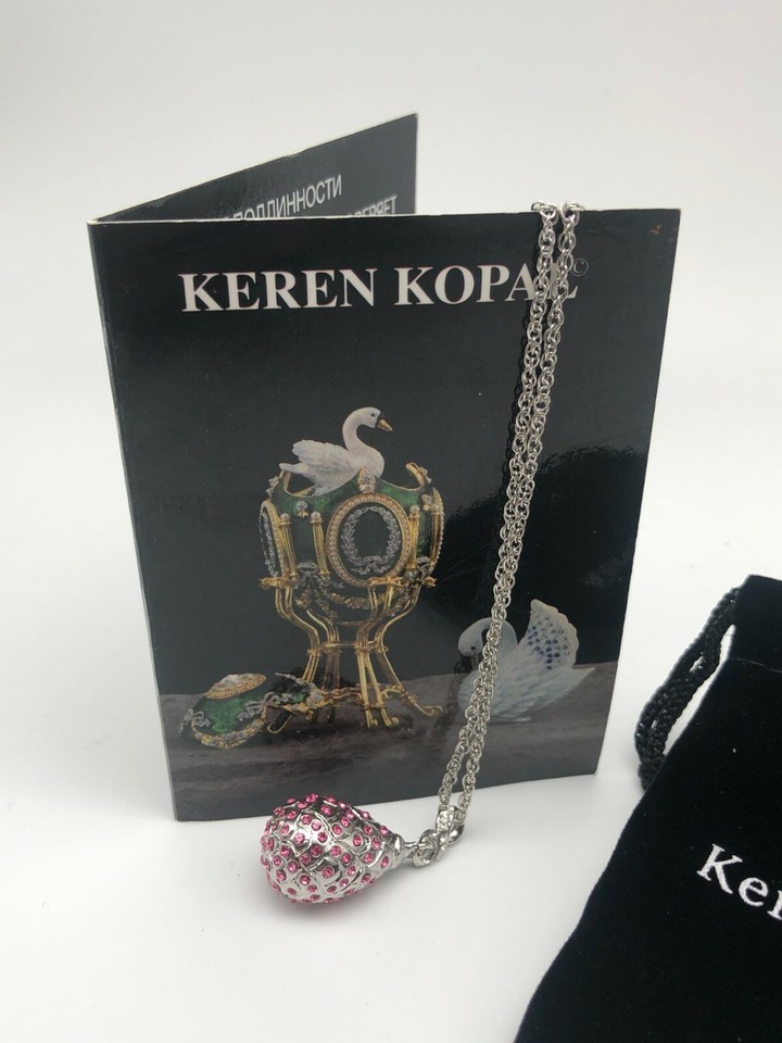 - Silver and red Egg Pendant Necklace with crystals by Keren Kopal