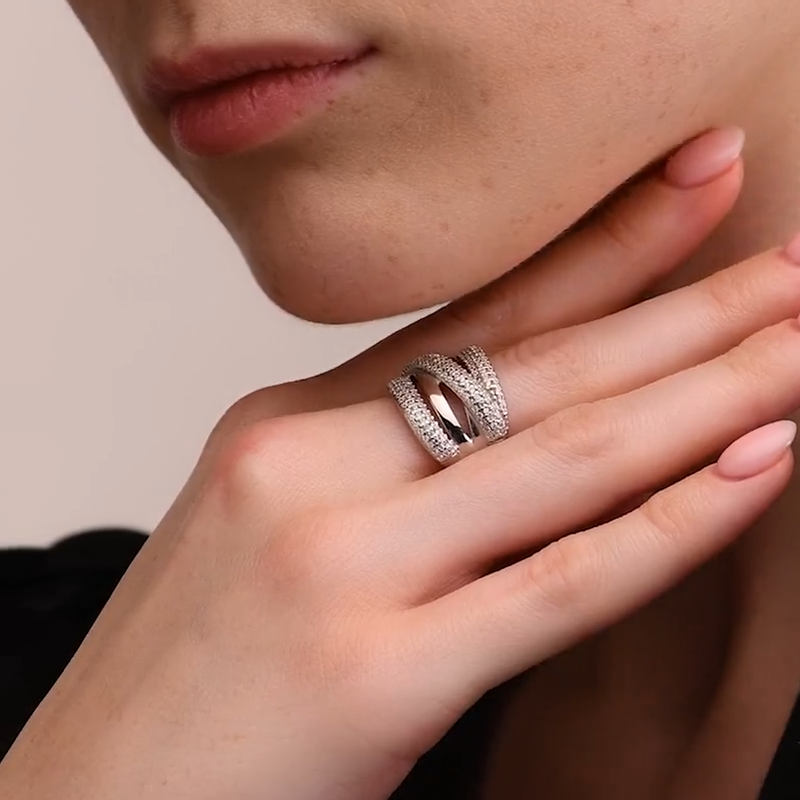 About the main stone of the jewelry Cubic zirconia is an artificial analogue of a diamond. Initially, the stone was created as a material with certain optical properties for laser equipment and got its name from the place of its invention - Lebedev Physical Institute of the Academy of Sciences (FIAN). Cubic zirconia is in no way inferior to a diamond in its appearance, it is perfectly clean, transparent and sparkles in the sun like a precious stone, allowing you to create real jewelry masterpieces. Cubic zirconia is presented in a wide range of colors and shades, so they are often used to imitate natural gems. About the precious metal Rhodium-plated silver - a coating with a thin layer of rhodium (platinum group metal) protects silver products from blackening and allows you to preserve the shine. The appearance of products with a rhodium coating is distinguished by a shinier and whiter surface. size 6-9,5