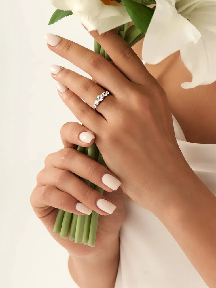 About the main stone of the jewelry Cubic zirconia is an artificial analogue of a diamond. Initially, the stone was created as a material with certain optical properties for laser equipment and got its name from the place of its invention - Lebedev Physical Institute of the Academy of Sciences (FIAN). Cubic zirconia is in no way inferior to a diamond in its appearance, it is perfectly clean, transparent and sparkles in the sun like a precious stone, allowing you to create real jewelry masterpieces. Cubic zirconia is presented in a wide range of colors and shades, so they are often used to imitate natural gems. About the precious metal Rhodium-plated silver - a coating with a thin layer of rhodium (platinum group metal) protects silver products from blackening and allows you to preserve the shine. The appearance of products with a rhodium coating is distinguished by a shinier and whiter surface. size 4-8,5