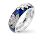 - Silvertone Rhodium Plated Brass Blue Enamel and Cubic Zirconia Floral Ring