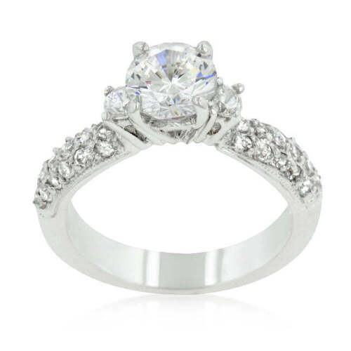 - Silvertone Rhodium Plated Brass Pave Cubic Zirconia Classic Engagement Ring