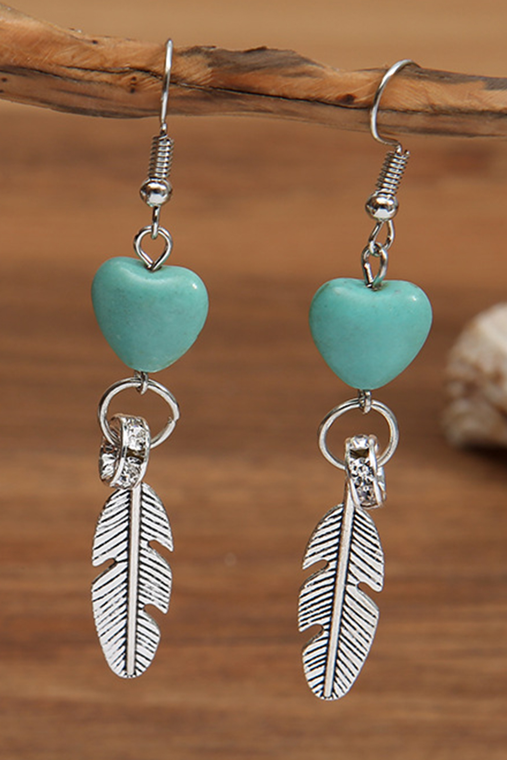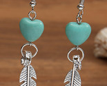 - Silvery Turquoise Heart Shape Alloy Feather Drop Earrings