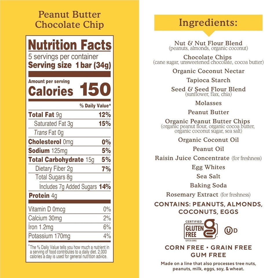 Ingredients: Peanut Butter,Chocolate Chip,Almond Flour,Coconut Flour,Sunflower,Flax,Molasses,Coconut Nectar,Chocolate Chips