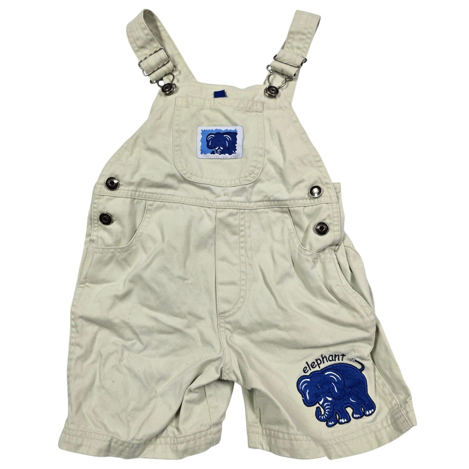 Simply Basic Baby Toddler Boy 2T Overalls Shorts Beige Elephant Applique Y2K VTG