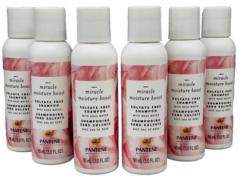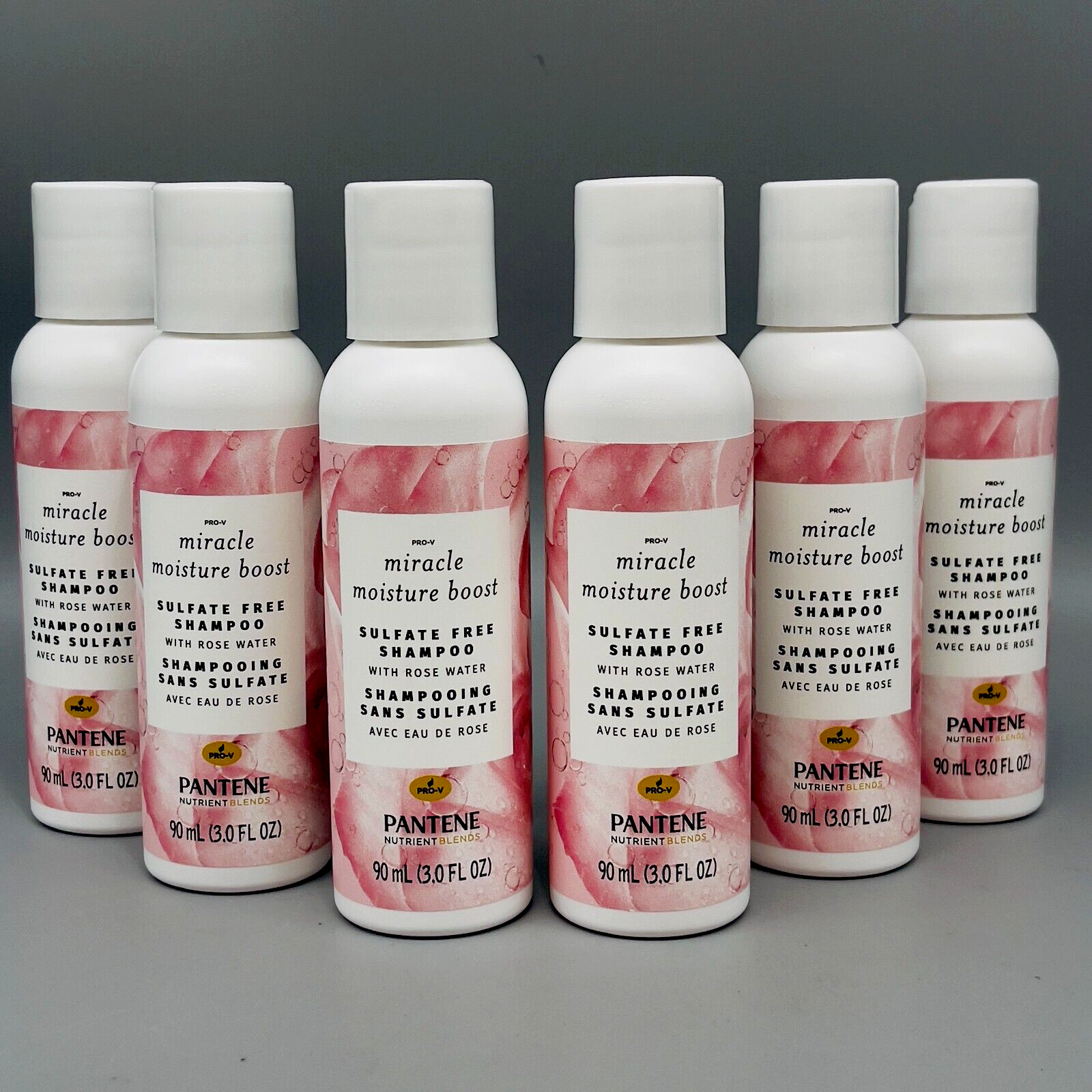 This Sale is For Six (6) Pantene Nutrient Blends Shampoos Rose Water Shampoo 3 oz. size Miracle Moisture Boost Moisturizing shampoo designed to smooth and hydrate dry ~ brittle hair Color-safe formula is safe for chemically treated hair Blend of pro vitamin B5 ~ antioxidants and rose water Frizz-taming Formula ~ Gentle cleansing to tame frizz and leave dry hair smooth and soft Scent: Floral ~ Currant ~ Jasmine ~ Rose All Hair Types Mineral Oil-Free ~ Paraben-Free ~ Contains Rose Water ~ Sulfate-Free ~ Silicone-Free ~ Dye-Free ~ Phthalate-Free Shampoo is new in the original packaging (sealed) Please view photos for a good description of this item Thank you!