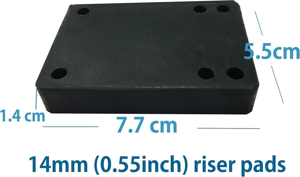 Dimensions: 14mm riser pads measure 7.7cm x 5.7cm x 1.4cm (L x W x H)