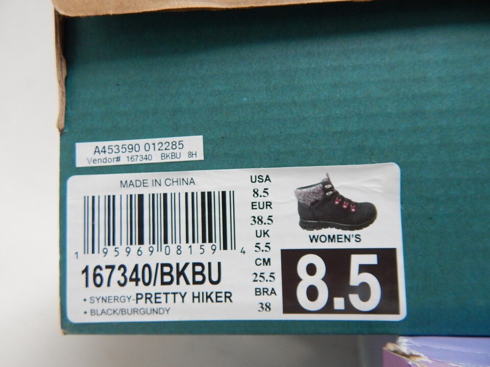 Skechers Synergy Pretty Hiker Sz 8.5 M EU 38.5 Womens Leather Winter Boot 167340 THIS SHOE'S CONDITION: NEW WITH BOX. -Notes: IF THE ITEM IS NOT TO YOUR EXPECTATION WE OFFER A 30 DAY RETURN POLICY. ABOUT US: We specialize in footwear shoe accessories at a highly discounted price. We have a selection of new shoes, and also some displays, demos, pre-owned as well. PHOTOS: New Shoes: We usually send the the exact shoes pictured but may occasionally use our own stock images to represent several shoes. Store Displays, Demos, Pre-owned Shoes: We will send the EXACT shoes pictured here. A NOTE ABOUT OUR PRE-OWNED SHOES: We try to catch everything and describe it in the listing, but there are some things we may miss on occasion. This is why we take several pics of all pre-owned shoes from every angle possible so you as the buyer see what you will be getting. Also, because we are re-sellers we do not know the exact mileage of the shoes. SHIPPING: Shoes are in stock and ready to ship. We have a 1 day handling time but will usually ship same day if you purchase before 3PM Central Standard Time Need the item faster? We offer priority, expedited, and express one- day shipping on nearly all of our items We will combine shipping for expedited and one day deliveries. International Buyers Please Note: Import duties, taxes, and charges are not included in the item price or shipping cost. These charges are the buyer's responsibility. Please check with your country's customs office to determine what these additional costs will be prior to bidding or buying. QUESTIONS? Message us- we are usually very fast at responding! Listing and template services provided by inkFrog