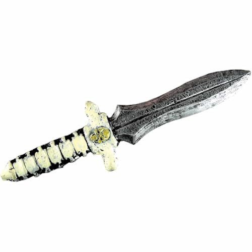 SKULL FOAM DAGGER KNIFE SABER Adult Cosplay Costume Accessory Fake Weapon Prop Rare New with Tags Realistic Foam SKULL DAGGER KNIFE SABER Fake Weapon Aged Faux Vertebrae Bone inspired Design with Pirate Skull Detail Voodoo Witch LARP Role Play Cosplay Costume Prop Eat, drink, and be scary! Take a look at this saber weapon with a handle inspired by the human spine and skull. A perfect weapon to complement your deadly character! Features saber foam weapon Halloween costume accessory Handle appears to be a human spine with skull trim detail Realistic but made of a new flexible foam material Perfect for Halloween, stage, theater, horror movie and theme party Material(s): foam covered plastic Measurement approx. 12.75-inch Long x 3.5-inch Wide x 1.25-inch Deep Color: Beige/Silver/Black Age 8+ Care: spot clean sku: HH-6342110 Additional Details ------------------------------ Product description: SKULL FOAM DAGGER KNIFE SABER Adult Cosplay Costume Accessory Fake Weapon Prop Rare New with Tags Realistic Foam SKULL DAGGER KNIFE SABER Fake Weapon Aged Faux Vertebrae Bone inspired Design with Pirate Skull Detail Voodoo Witch LARP Role Play Cosplay Costume Prop Eat, drink, and be scary! Take a look at this saber weapon with a handle inspired by the human spine and skull. A perfect weapon to complement your deadly character! Features saber foam weapon Halloween costume accessory Handle appears to be a human spine with skull trim detail Realistic but made of a new flexible foam material Perfect for Halloween, stage, theater, horror movie and theme party Material(s): foam covered plastic Measurement approx. 12.75-inch Long x 3.5-inch Wide x 1.25-inch Deep Color: Beige/Silver/Black Age 8+ Care: spot clean sku: HH-6342110