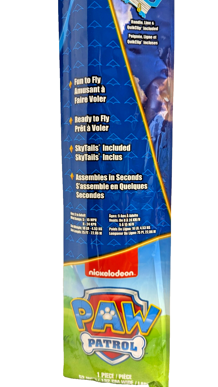 Sky Delta 52 Paw Patrol Kite with Handle, Line, and Sky Tails.