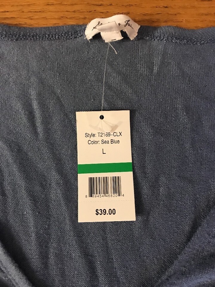 New with tags. Size large 57% cotton 40% rayon 3% spandex