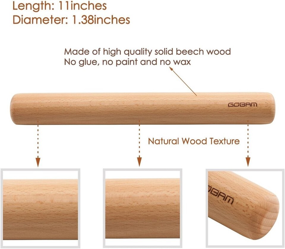Sleek Beech Wood Rolling Pin ? 11 x 1.38 Inches for Smooth Baking Experience